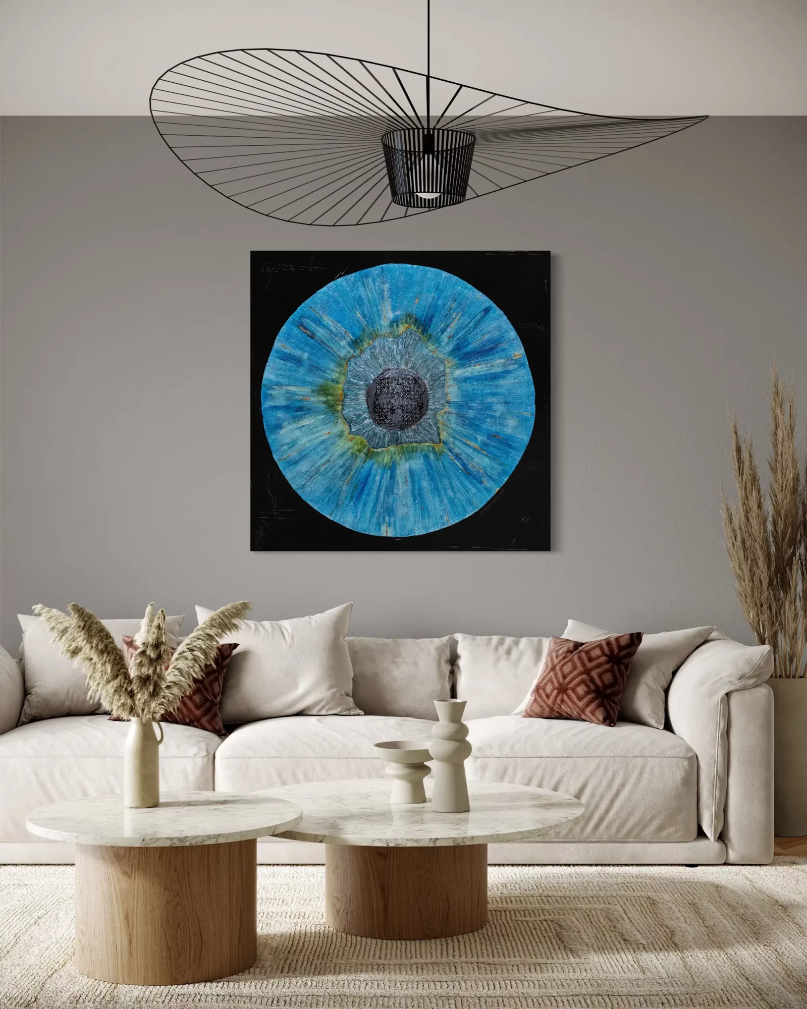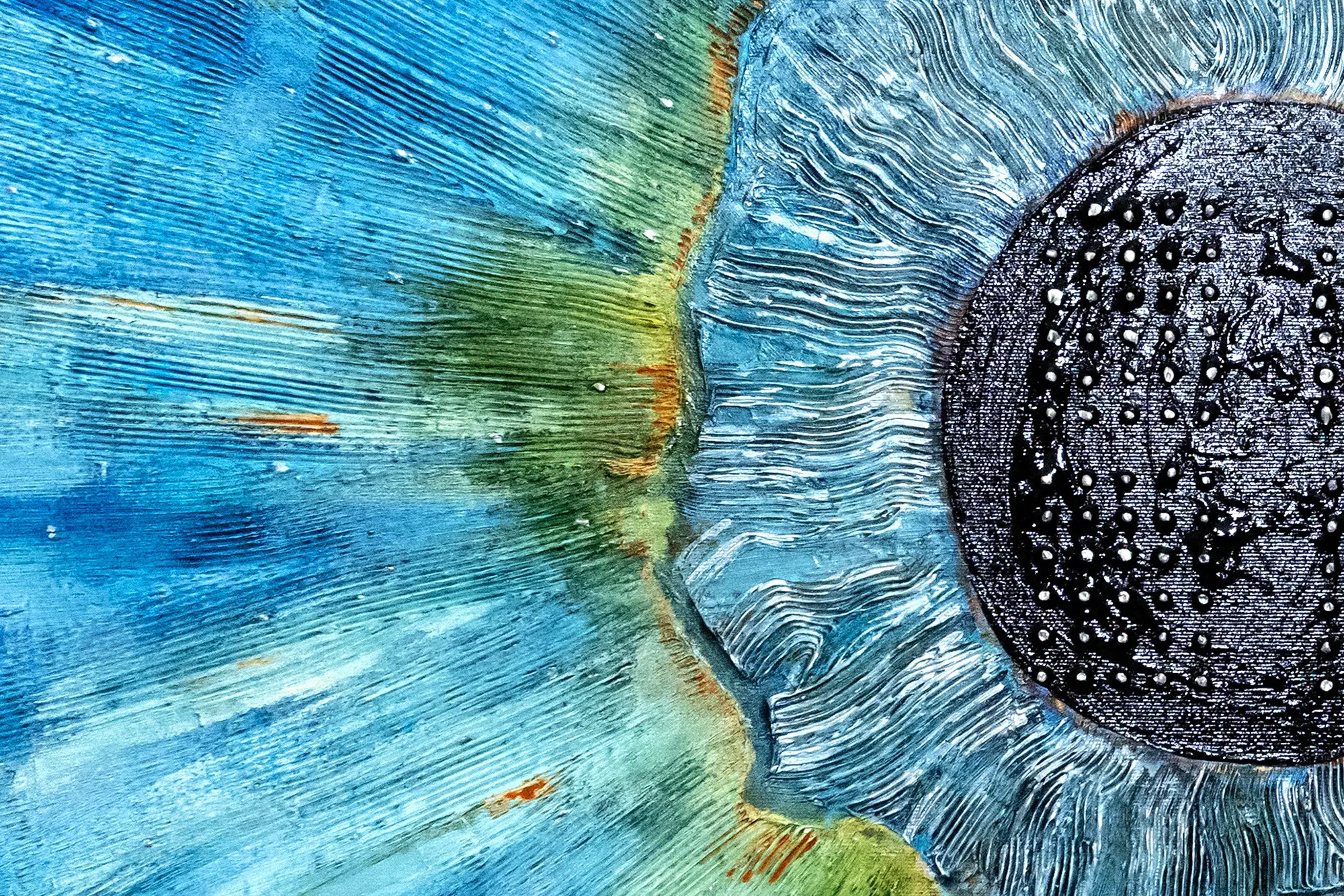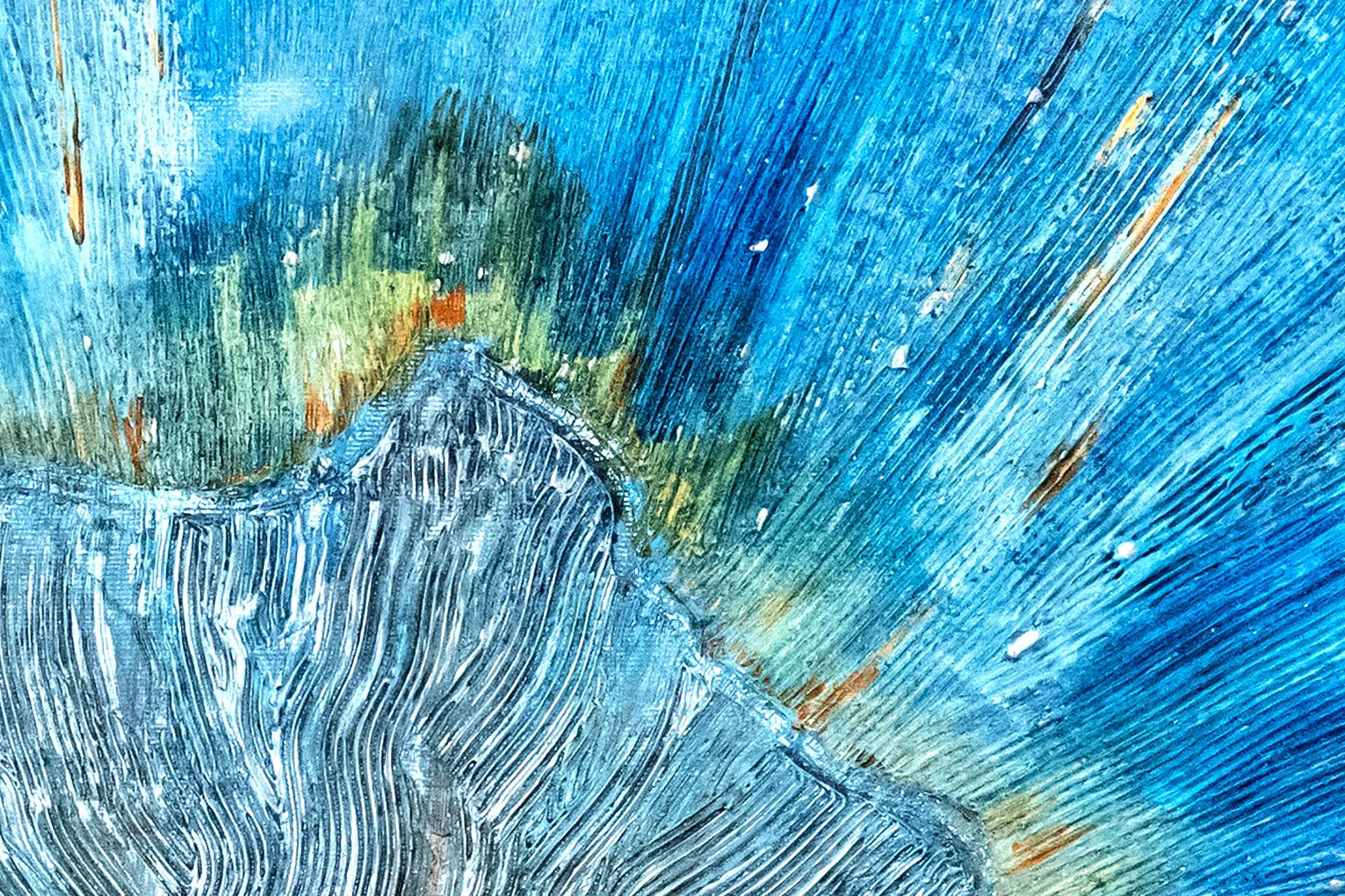 farby i tusze akrylowe, verniks błyszczący, technika własna na płótnie