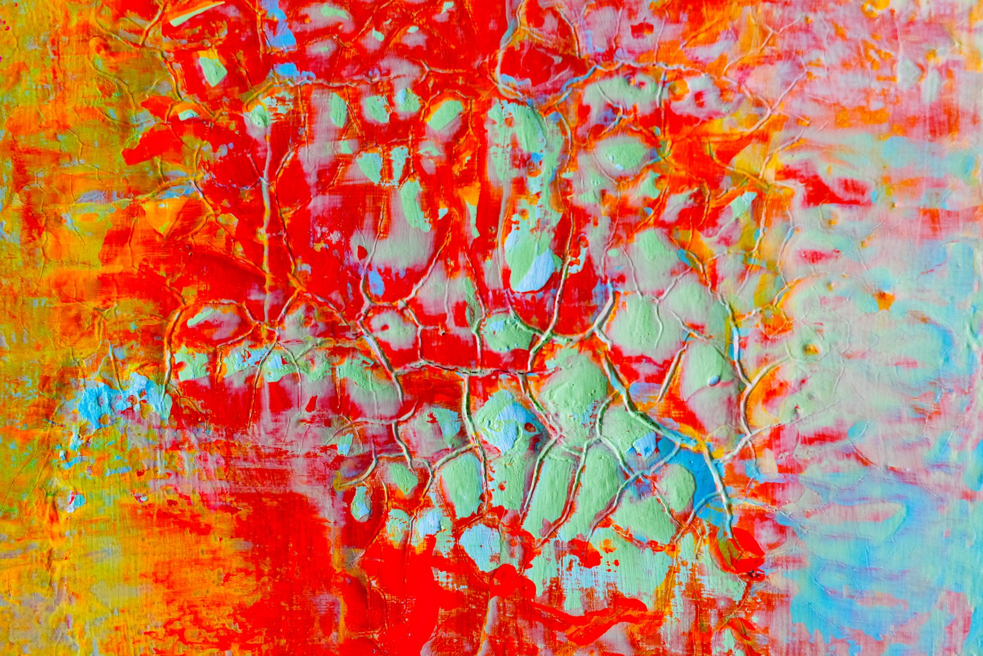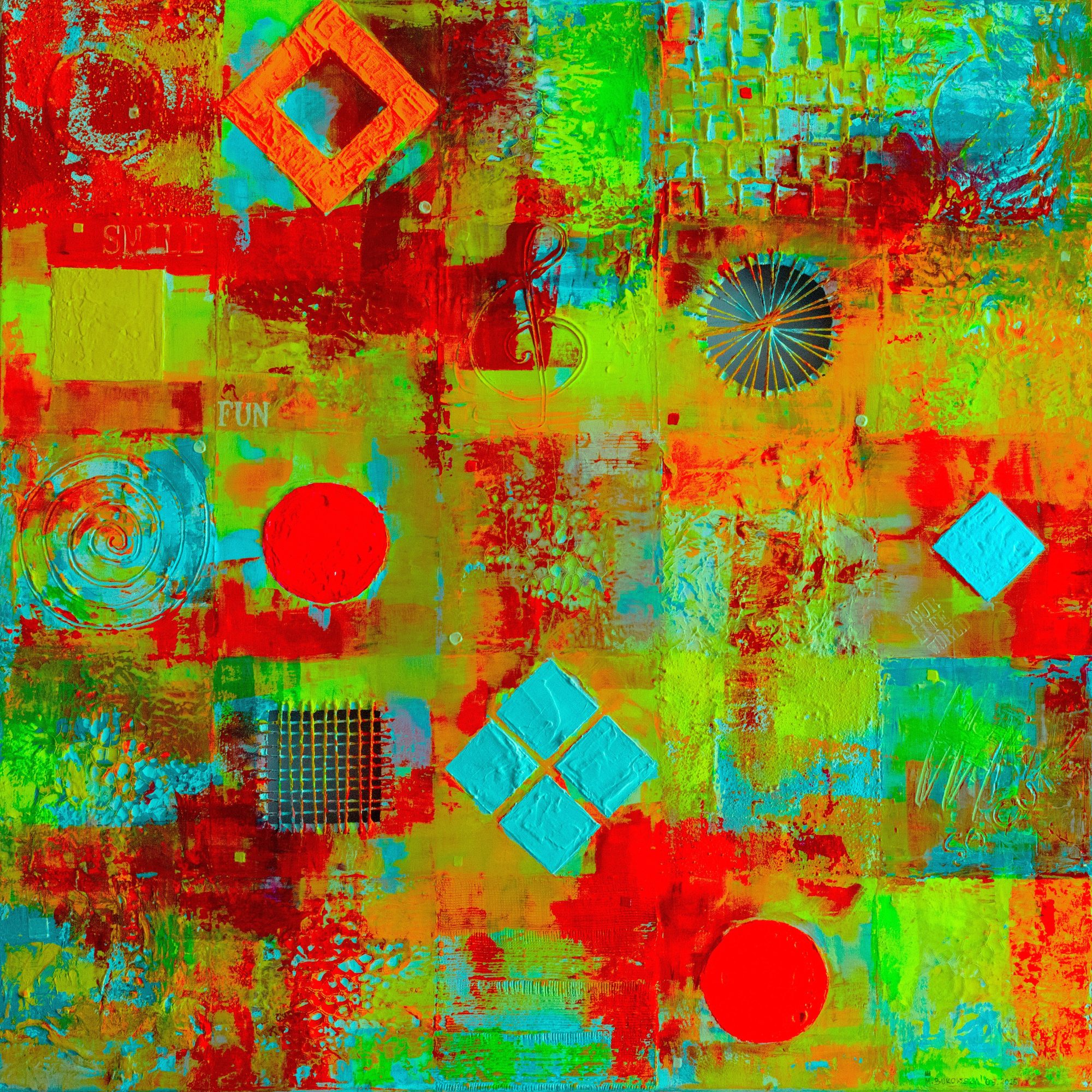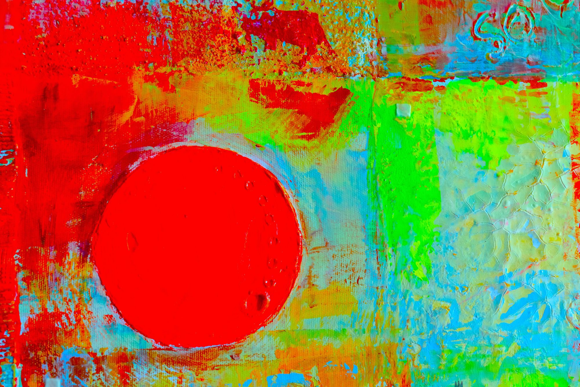 akryl technika własna na płótnie Mój 50-ty obraz w szalonej, fluorescencyjnej kolorystyce.