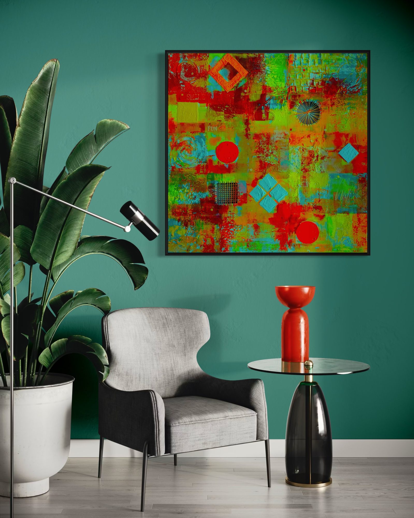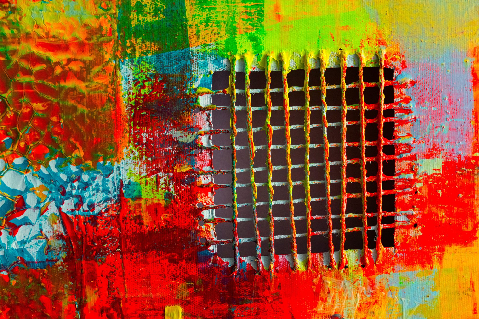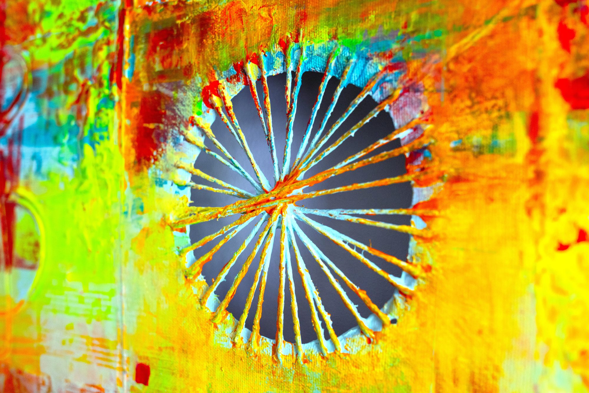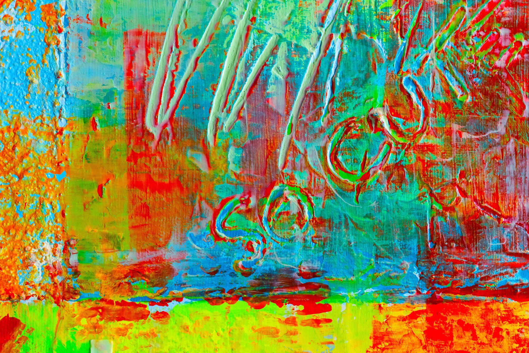 akryl technika własna na płótnie Mój 50-ty obraz w szalonej, fluorescencyjnej kolorystyce.